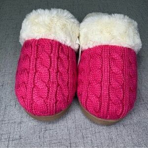 J. Crew Pink Cable Knit Scuff Slippers in Soft Fuchsia. New with tags. Size 7, 8 or 9. Perfect gift idea!