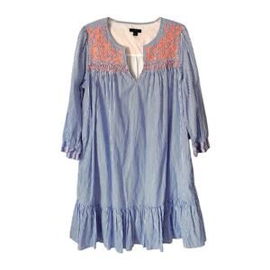 J. Crew Pink Embroidered Popover Blue White Stripe Dress size medium