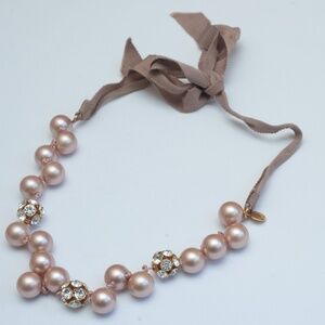 J Crew Pink Faux Pearl and Rhinestone Cluster Ribbon Necklace Vintage 2010ish