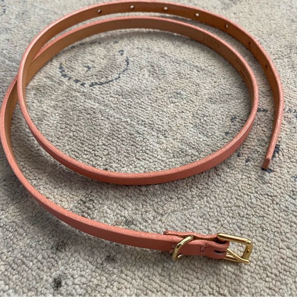 J. Crew Pink Leather Skinny Belt Small Gold Hardware