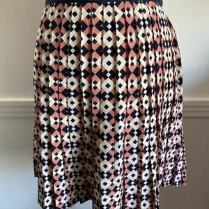 J. Crew • Pink Navy Pleated Diamond Silk Mini Skirt
