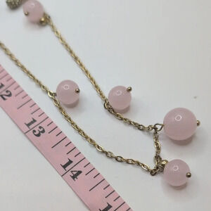 J. Crew Pink Necklace with Rose Quartz Beads and Silver Chain