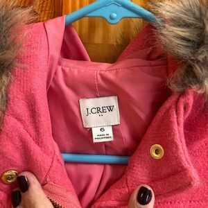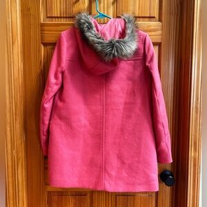 J. Crew Pink Pea Coat with Faux Fur Trim