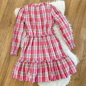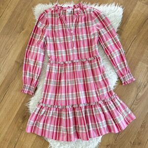 J. Crew Pink Plaid Mini Dress with Ruffle Hem | Size 00