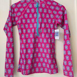 New with tags, never worn J. Crew Factory women's pink print rash guard in size extra small (XS) with front zip