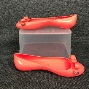 J. Crew Pink Rubber Slip On Ballet Flats Jelly Bow Round Toe Women’s Size 5