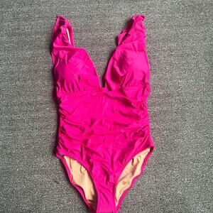 J. Crew Pink Ruffle One Piece Swimsuit NWT Size 14