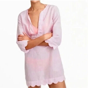 J. Crew Pink Scallop Swim Cover Up / Tunic / Dress Linen Cotton Blend Size XS