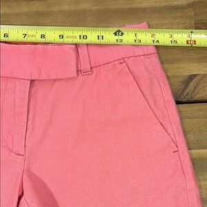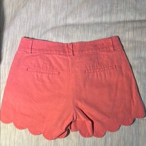 These shorts from J. Crew feature a playful scalloped hem and a soft pink hue, perfect for adding a touch of elegance to your warm-weather wardrobe. Crafted from linen, cotton blend fabric, they offer a tailored fit ideal for both casual and semi-formal occasions.