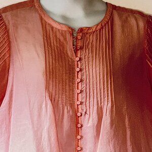J. Crew Pink Silk Blend Top Button Up with Covered Buttons Pintuck Detail 2X