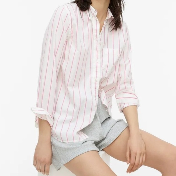 J. Crew | Pink Stripe Classic Fit Washed Cotton Poplin Button Down Shirt Size 6