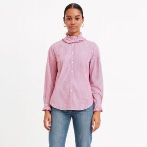 J. Crew Pink Striped Ruffled Button Front Poplin Shirt, XXS