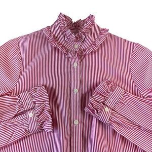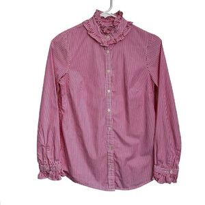 J. Crew Pink Striped Ruffled Button Front Poplin Shirt, XXS