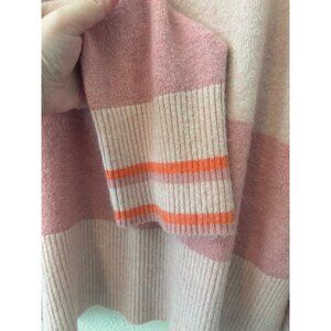 J. Crew Pink Striped Turtleneck Sweater L Supersoft Yarn Cozy & Stylish