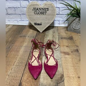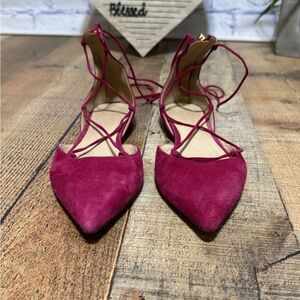 J. Crew Pink Suede lace-up pointed-toe flats