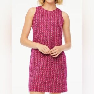 Chic tweed mini dress by J. Crew. Features a stylish pink and black pattern. Ideal for versatile wear.