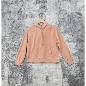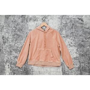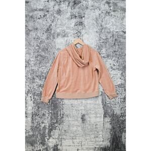 J Crew Pink Velour Relaxed Fit Pullover Hooded Sweatshirt Sweater Size XS