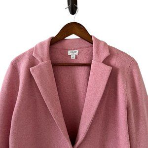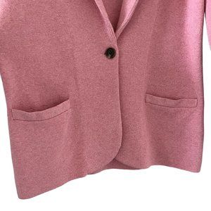 Elegant pink cardigan. Single-button closure. Perfect for layering.