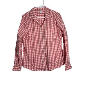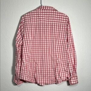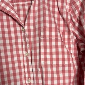 Stylish pink and white checkered button-up shirt. Perfect for casual outings.