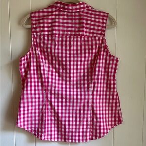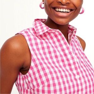 J. Crew Pink and White Gingham Button Down Sleeveless Beach Vacation Top Sz XL