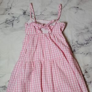 J. Crew Pink and White Gingham Midi Dress