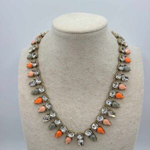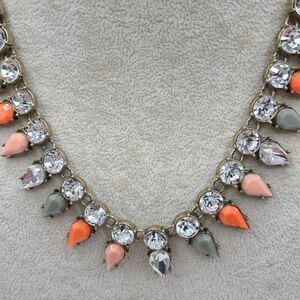 J Crew Pink Gray Resin Clear Crystal Chunky Vintage Necklace