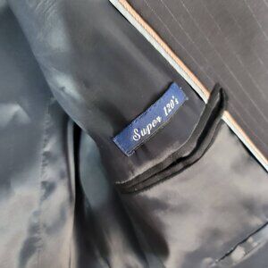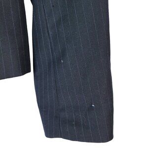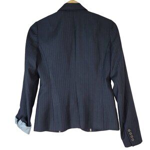 J. Crew pinstripe Super 120s 3-button single breast wool blazer navy blue Size 4 Tall notch collar. Excellent pre-owned condition with no stains or tears. Please see last picture for small hole on left sleeve where the sleeve rolls up.