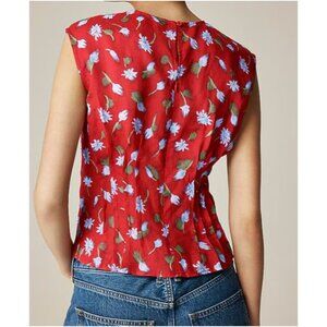 J. Crew Pintuck Brushed Daisy Print Shell Top Red Size 16