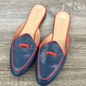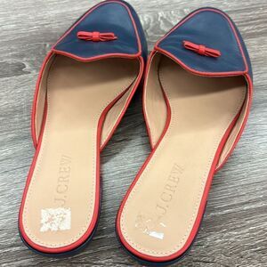 J. Crew Piped Loafer Mules In Red And Navy Size 7.5/ New