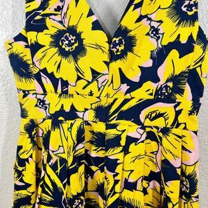 J. Crew Pique Yellow Floral Sunflower Fit & Flare V-Neck Dress size 00 cottage