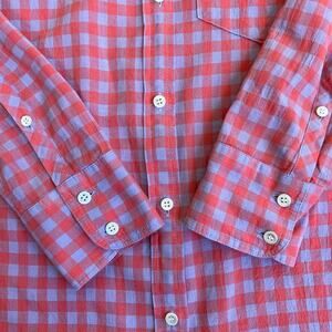 J. Crew Plaid Check Boy Shirt Red Purple Relaxed Fit Casual Cabincore Sz 0