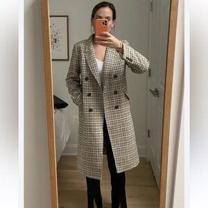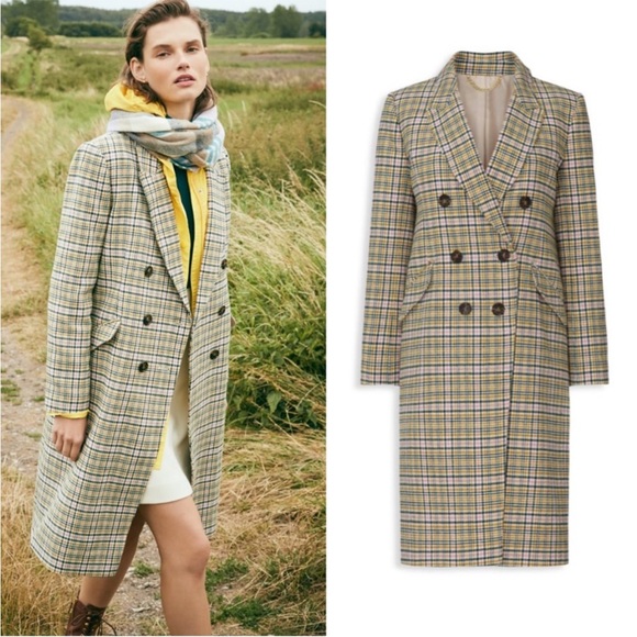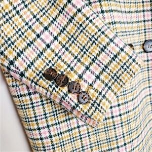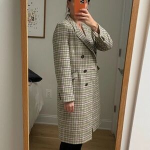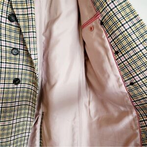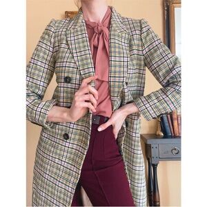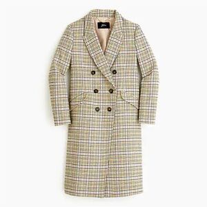 J. Crew Plaid Long Peacoat Double Breasted Italian Wool Ivory Pink Size 4