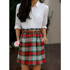 J. Crew Plaid Mini Skirt Womens Academia Red Green Pull On
