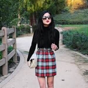 J. Crew Plaid Mini Skirt Womens Size 2 Academia Red Green Pull On Wool Y2K
