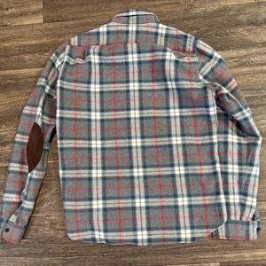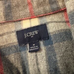 J Crew Plaid Rugged Shirt Men’s Sz Medium F4557 Gray Red Tan Tartan Elbow Pad