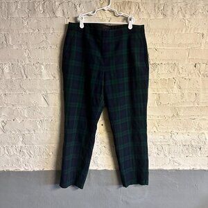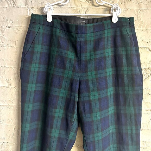 Wool blend blue and plaid pants with an invisible side zip closure and lining.