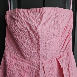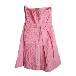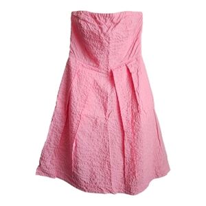 J. Crew Pleated Fit & Flare Textured Strapless Pink Cotton Dress Sz 0 Barbie