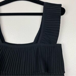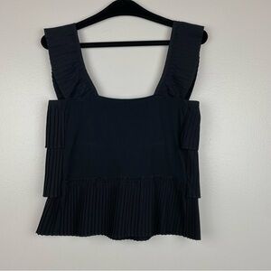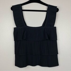 J. Crew Pleated Ruffle Tiered Square Neck Tank Top Black Size XS