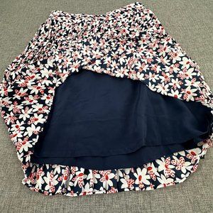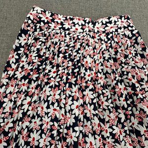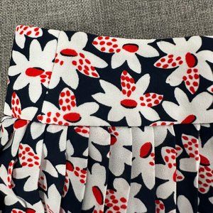 J. Crew Pleated Skirt Floral Sz 00‎ Blue Red White Lined Zipper