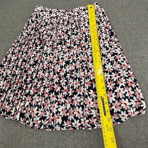 J. Crew Pleated Skirt Floral Sz 00 Blue Red White Lined Zipper Very Good Pre-Owned Condition Polyester Machine Wash bin 15 - 498