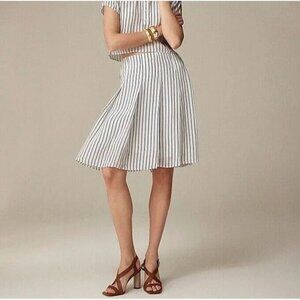J. Crew Pleated Skirt Striped Crepe De Chine White Blue Size 2 NWT