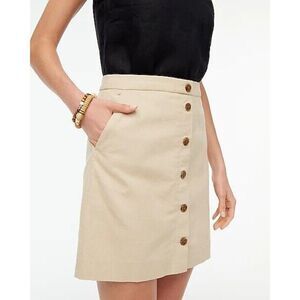 J Crew Women's Linen-blend Button-front Mini Skirt Khaki 16
