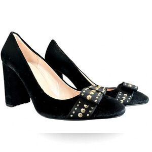 J. Crew Plush Velvet Gold-Studded Bow Rounded Toe Block Heels