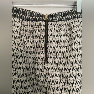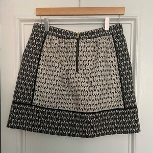 J. Crew Pocketed Textured Black & White Patterned Skirt with Gold Exposed Zipper