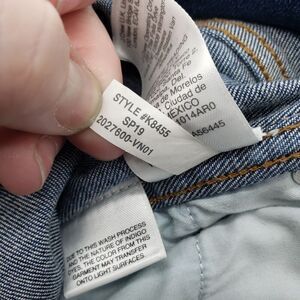 Condition: Good used condition. Minor distressing on the front thigh, and some fraying at the hem. Light overall wear and light fading consistent with previous gentle use. No major flaws.