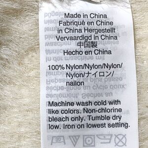 Crew neck - Full zip closure - Side pockets - 34” from back or neckline to hem - 22” sleeve - 100% nylon