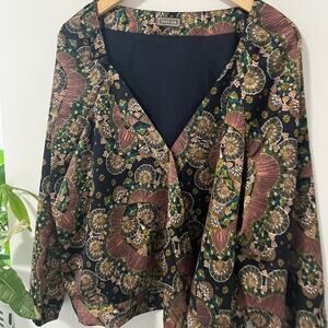 J. Crew Point Sur Paisley Print Satin Wrap Blouse Size 2X