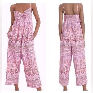 J. Crew Point Sur Paisley Tie Front Wide Leg Jumpsuit Size 2