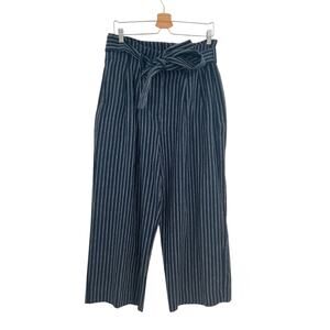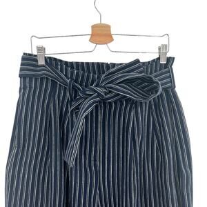 J. Crew Point Sur Paperbag Pants Wide Leg Belt Stripe Navy Blue Size 12