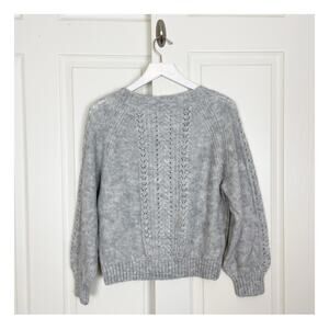 J. Crew Point Sur Pointelle Gray Wool Mohair Sweater Balloon Sleeve Sz S NWT